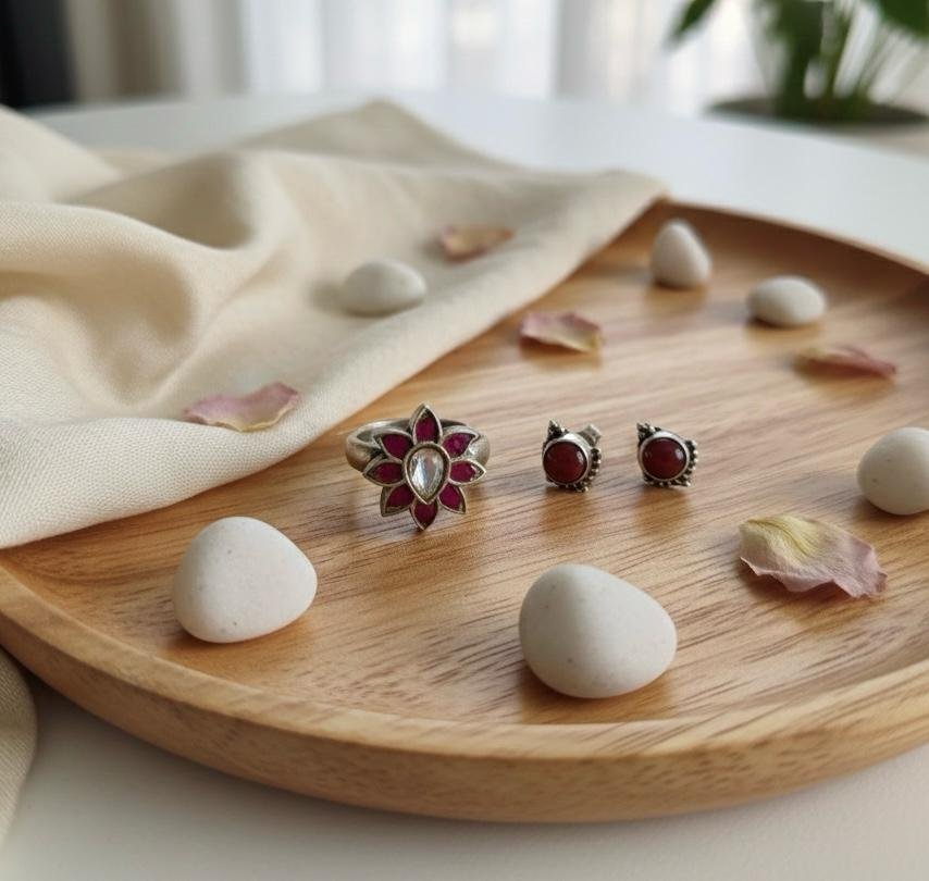 Be the first to review “Bohemian Ruby-Tone Petal Statement Ring in 925 silver”