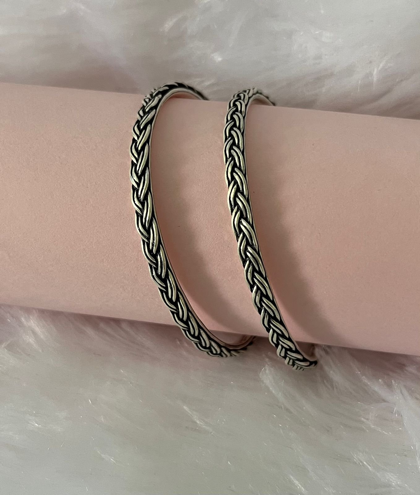 Elegant and timeless, these bangles are crafted in oxidised 925 silver with an intricate braided design.