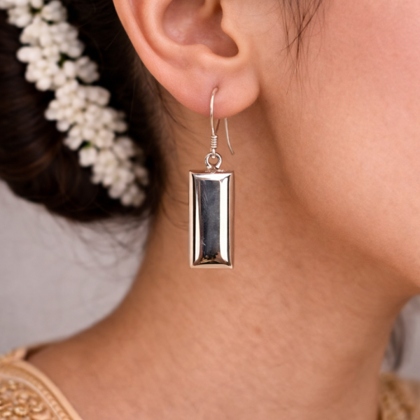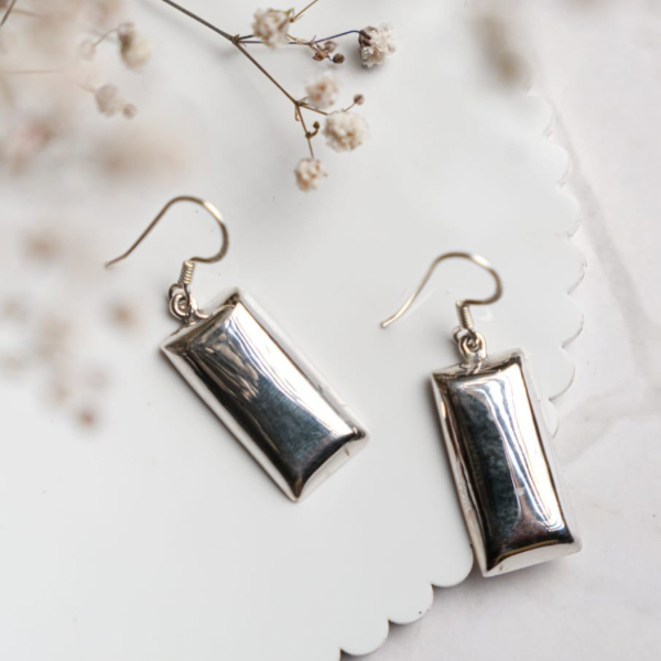 Sleek and modern, these polished silver rectangular drops bring a clean, minimalist aesthetic to your everyday style.