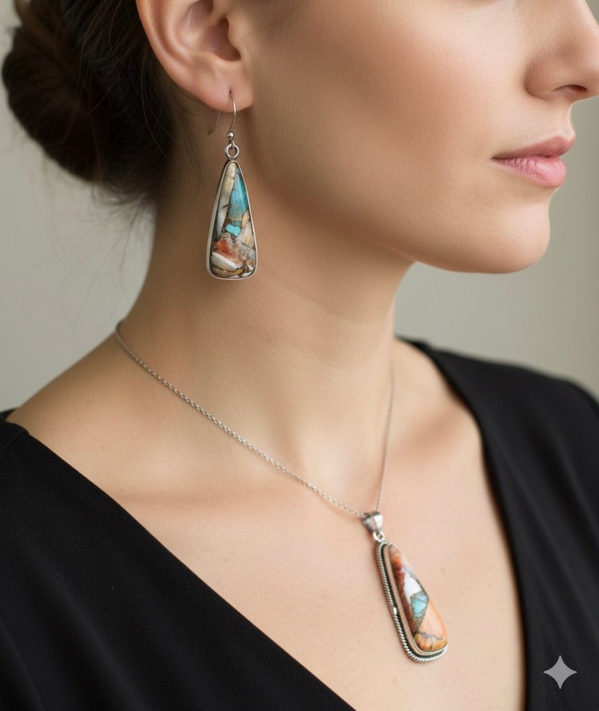 Add a vibrant splash of elegance to your jewelry collection with this stunning earrings and pendant set, crafted in pure 925 sterling silver. Each piece is artfully designed with an array of casted multicolored stones, offering a perfect balance of charm and sophistication.
