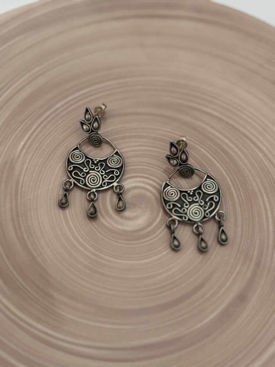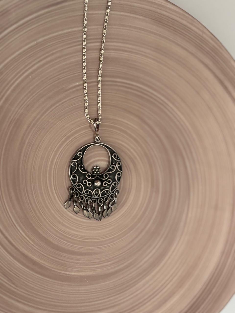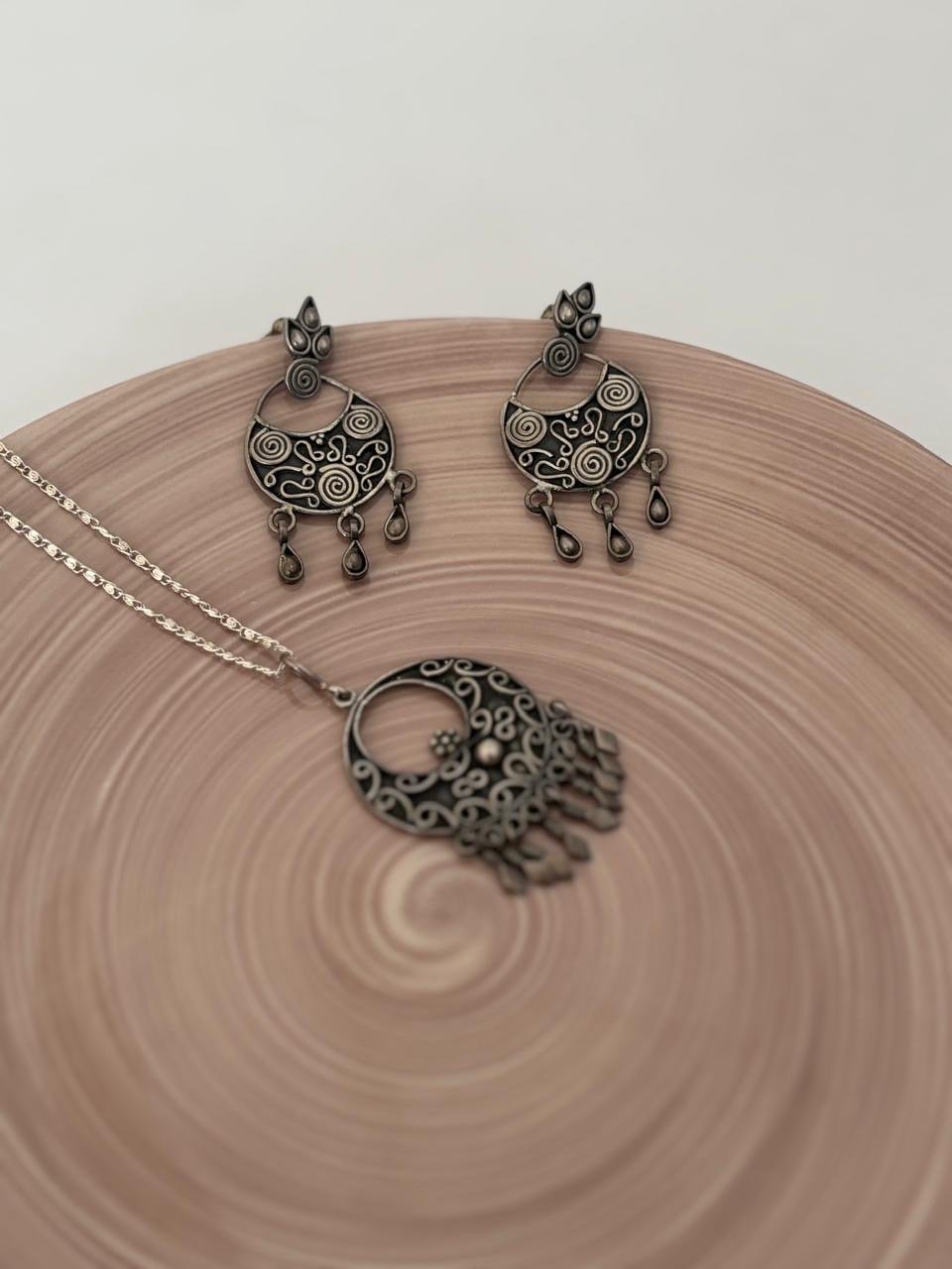 Oxidised Silver Boho Chandbali Pendant & Earrings Set
