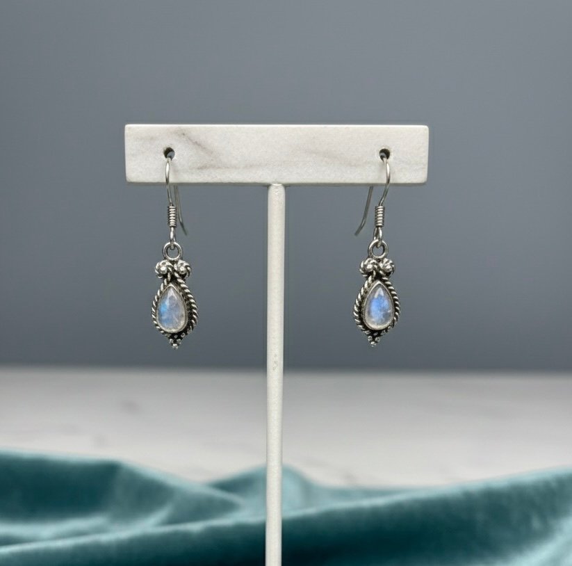 Rainbow moonstone drop earring in 925 silver