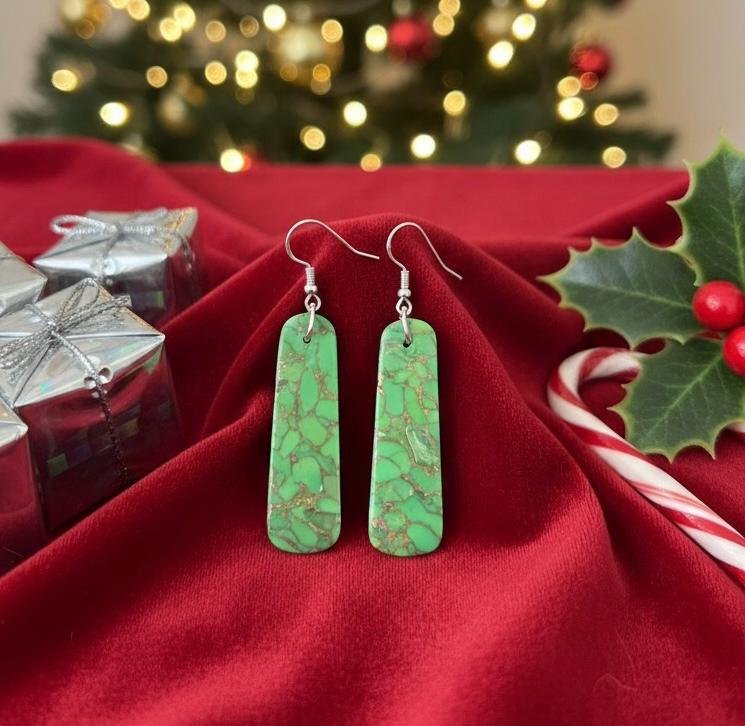 Showcase rich, vibrant color with these premium bar earrings, expertly crafted from a high-quality synthetic stone. This material beautifully mimics the look and depth of natural gems like Turquoise. Each piece is secured with 925 Sterling Silver ear hooks for comfortable and hypoallergenic wear. They deliver the luxurious look of fine gemstone jewelry with dependable durability.
